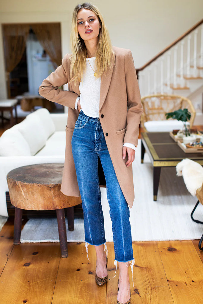 Tailored Coat - Camel Wool Cashmere $358.00 / size 6 4 6 8 10 4 6 8 10 4 (Out of stock) 6 8 10 Add to Cart This item is a recurring or deferred purchase. By continuing, I agree to the cancellation policy and authorize you to charge my payment method at the prices, frequency and dates listed on this page until my order is fulfilled or I cancel, if permitted. Your Email Send This site is protected by hCaptcha and the hCaptcha Privacy Policy and Terms of Service apply. Wool Cashmere for softness, durability, warmth and lightness 2 button front closure Front welt pockets Full length sleeves Flannel back liner - fully lined Model is wearing a size 4 Dry clean only Made in NYC