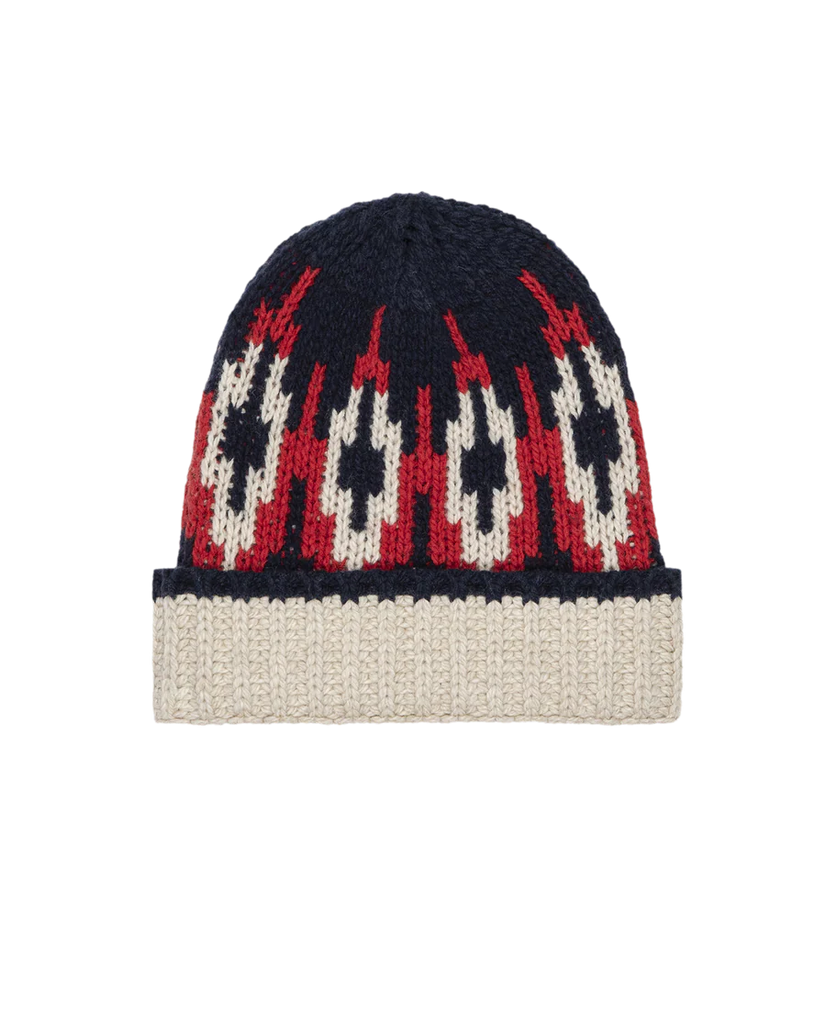 The Nordic Beanie is knit from a chunky wool rich yarn into a classic fair isle motif.