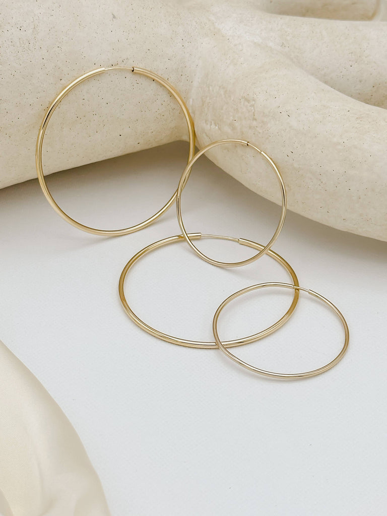 The Ansli Medium Seamless Hoop from Jonesy Wood is a timeless piece that combines fashion-forward style with ethically sourced materials. It is carefully crafted in 18k gold filled material, showcasing a dazzling gold color. With a 42mm diameter, this hoop earring adds a subtle, yet distinct elegance to any outfit. Inspired by the Smoky Mountains and the romantic spirit of every woman, it's more than just jewelry - it's a statement of style and sustainability. Add this hoop to your collection and let your style shine.